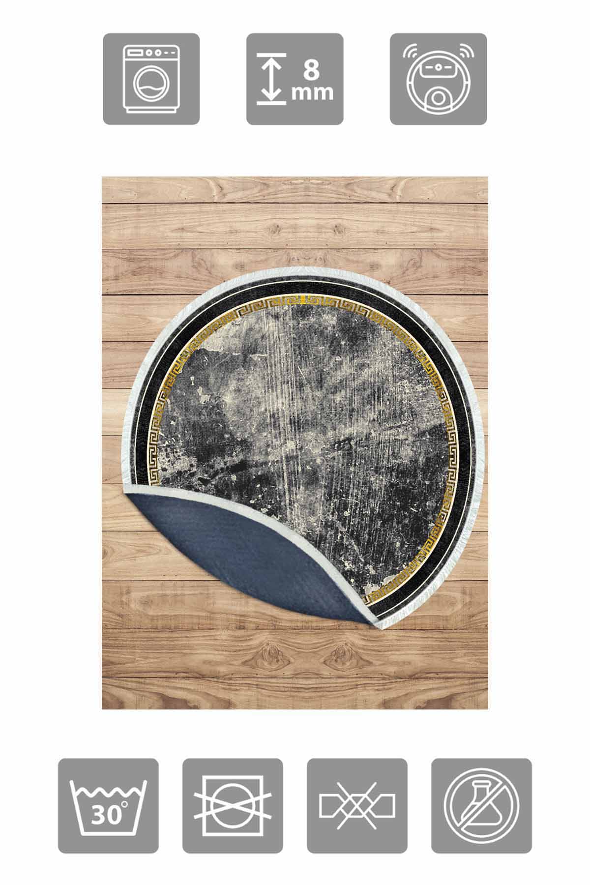 Maße und Lieferung: 1x Birkilim Runder waschbarer dekorativer Teppich, seidige, rutschfeste Basis | MLN-IP-YU-HT-1110