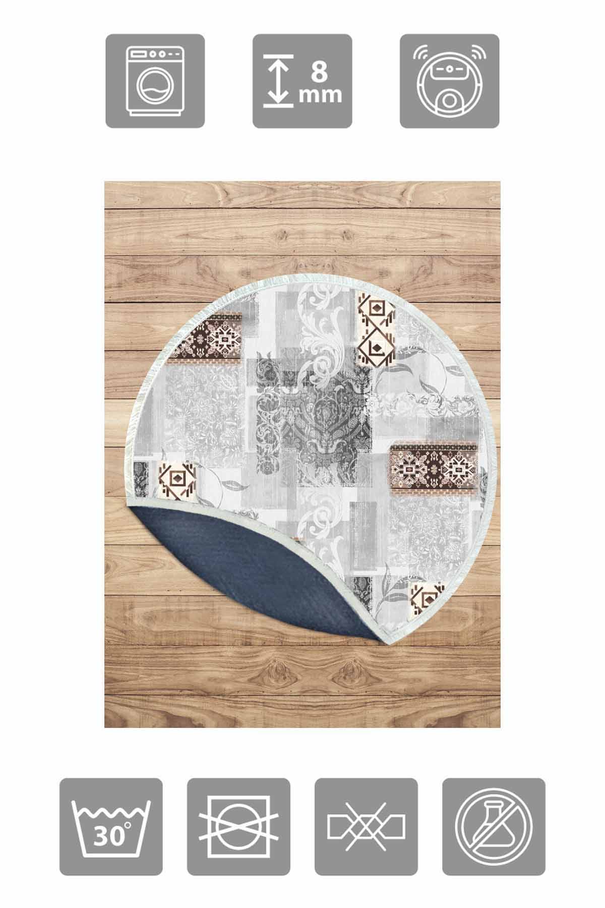 Produktinformationen "Birkilim Runder waschbarer dekorativer Teppich, seidige, rutschfeste Basis | MLN-IP-YU-HT-952"