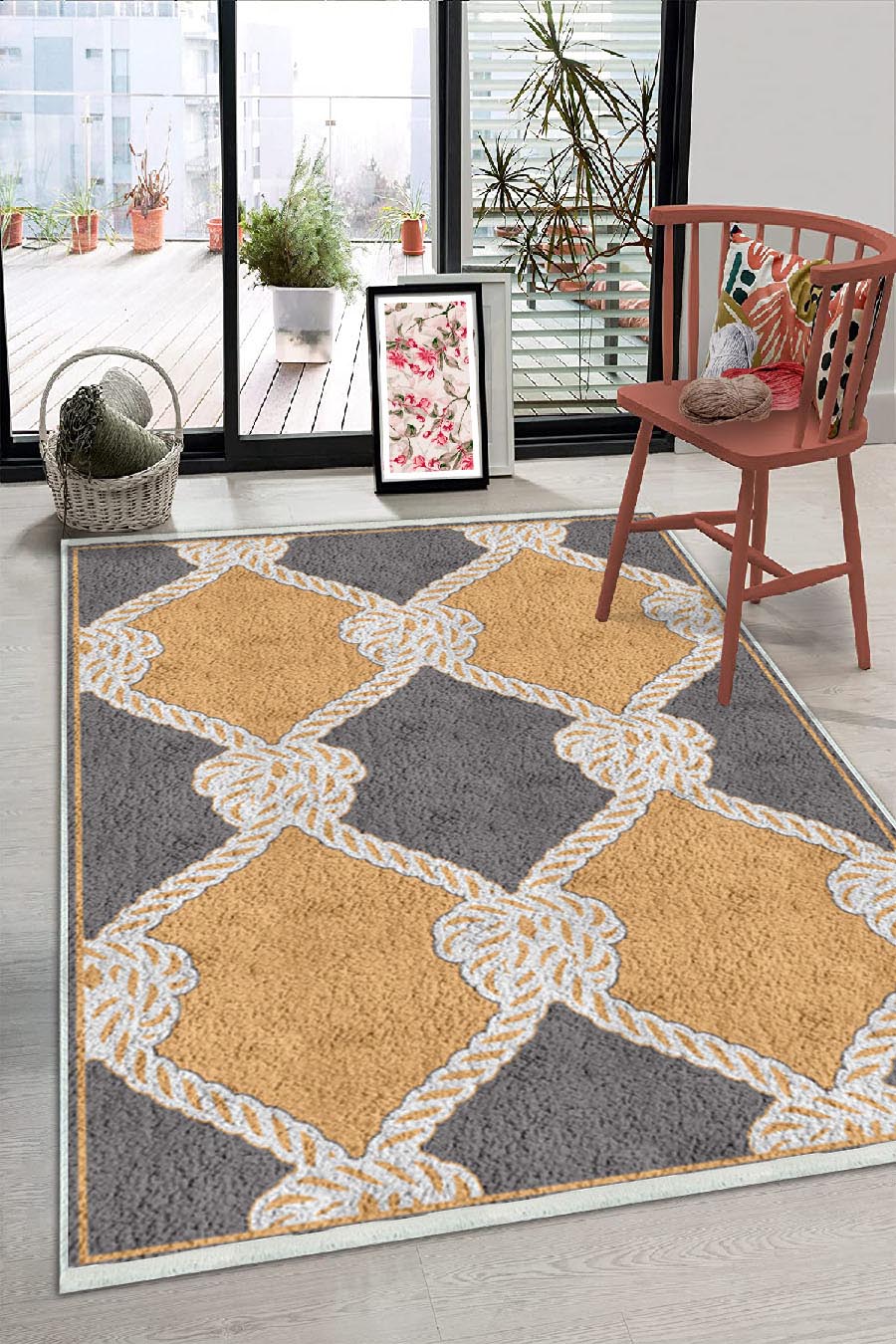 - Es ist ein digital bedruckter dekorativer Teppich.