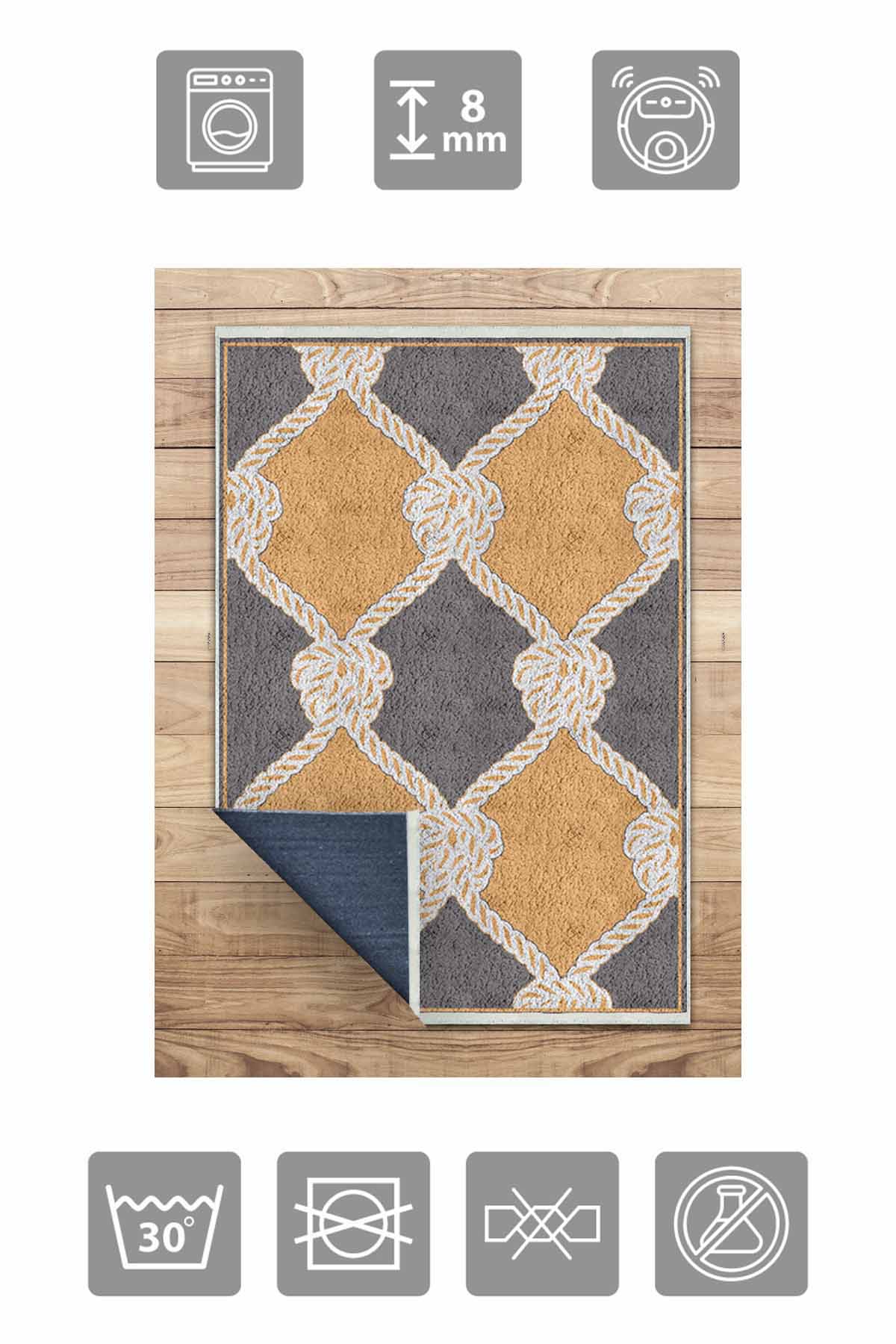 Maße und Lieferung: 1x Birkilim waschbarer dekorativer Teppich, seidige, rutschfeste Unterseite | MLN-IP-HS-221