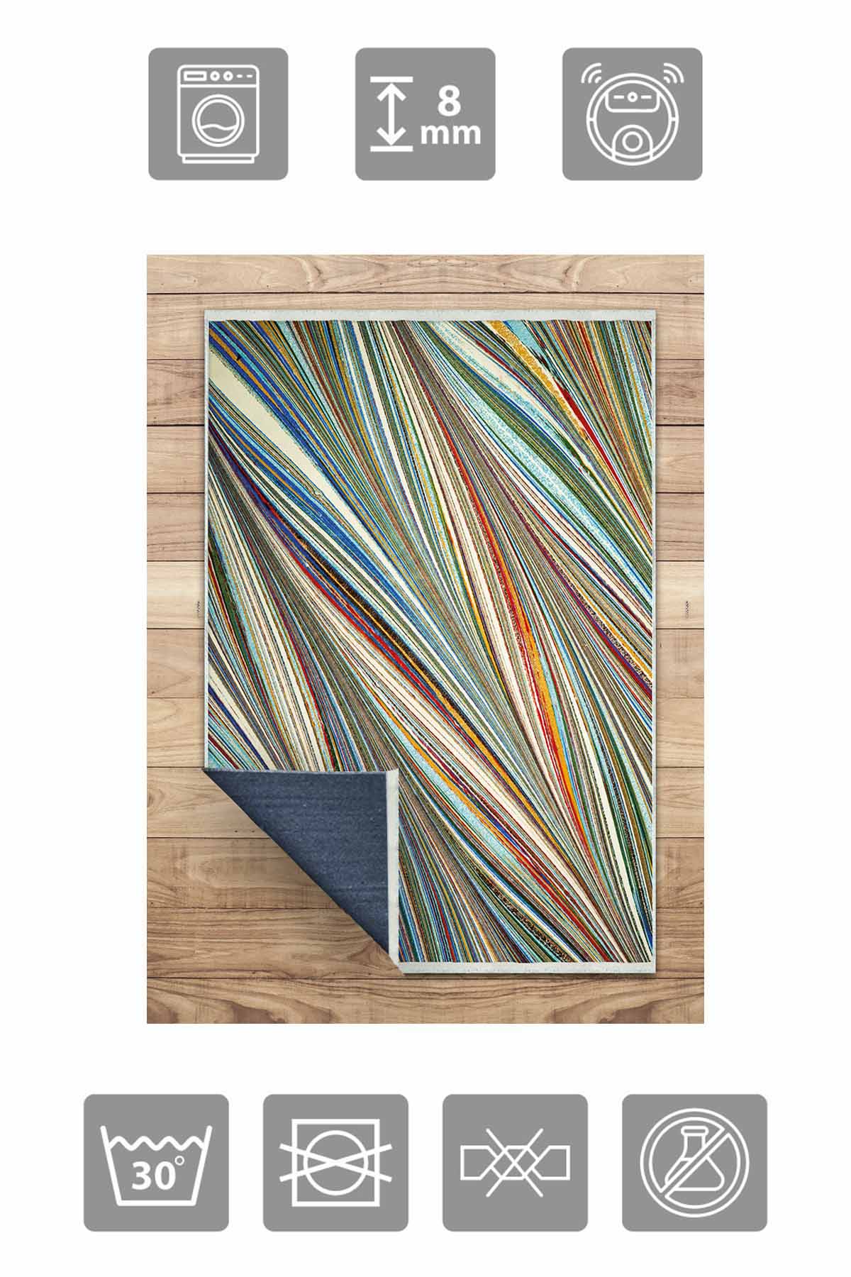 Maße und Lieferung: 1x Birkilim waschbarer dekorativer Teppich, seidige, rutschfeste Unterseite | MLN-IP-HS-230