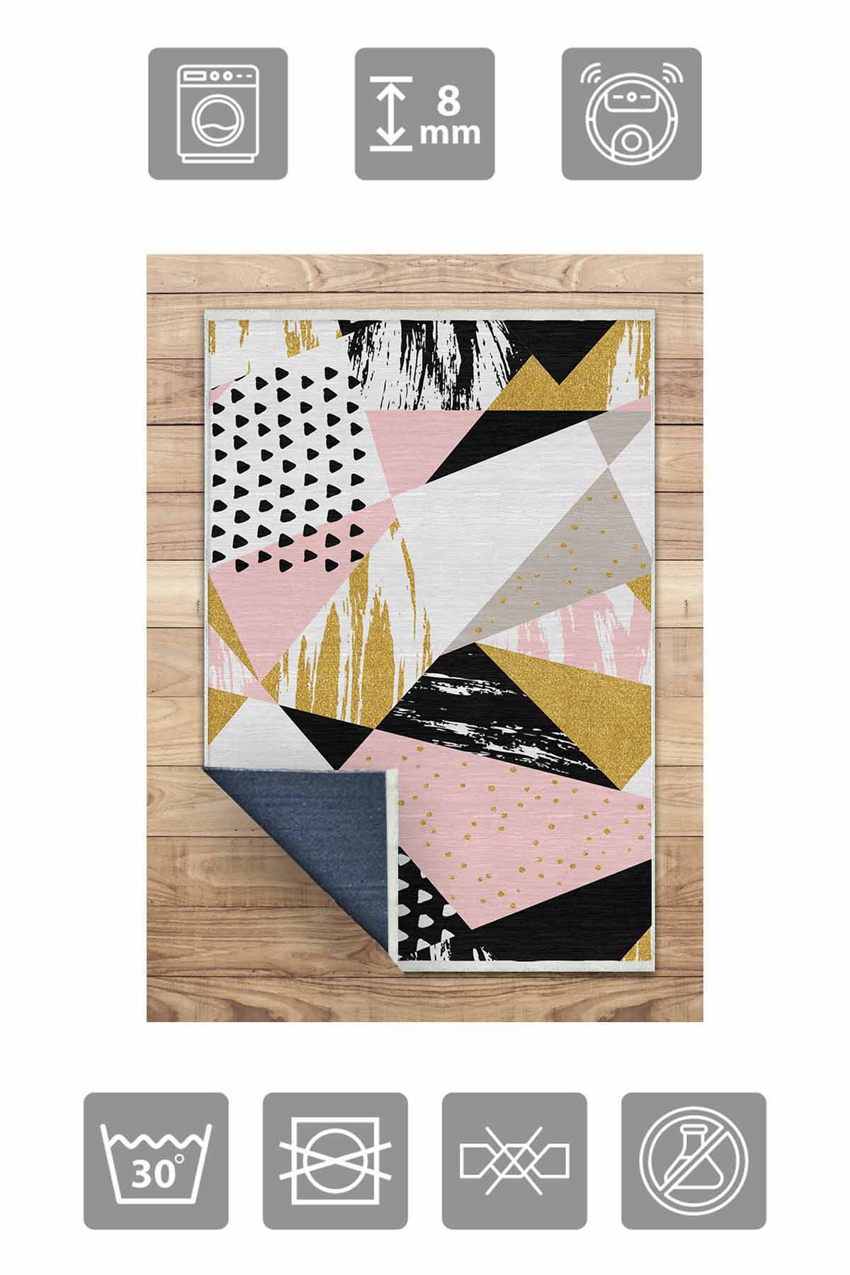 Maße und Lieferung: 1x Birkilim waschbarer dekorativer Teppich, seidige, rutschfeste Unterseite | MLN-IP-HS-232