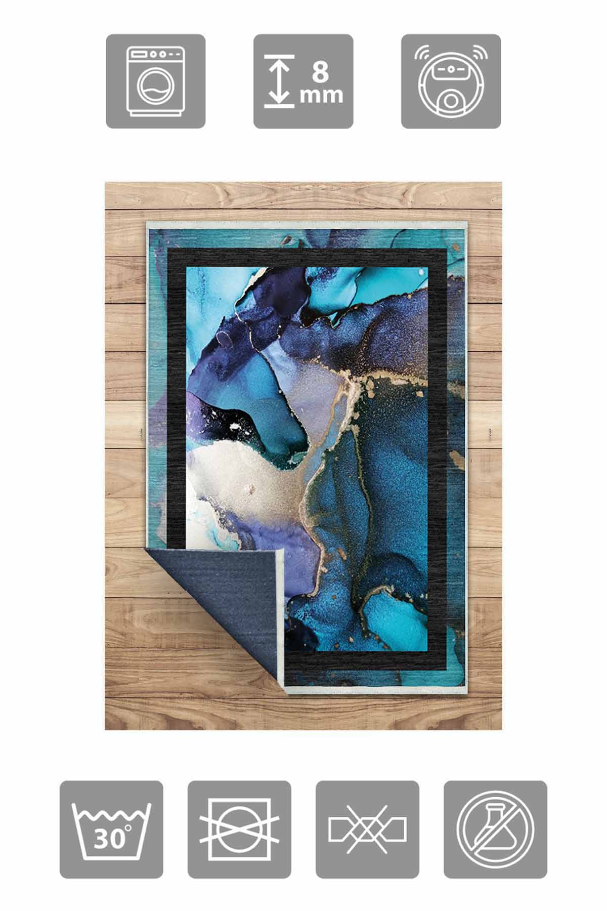 Maße und Lieferung: 1x Birkilim waschbarer dekorativer Teppich, seidige, rutschfeste Unterseite | MLN-IP-HS-237