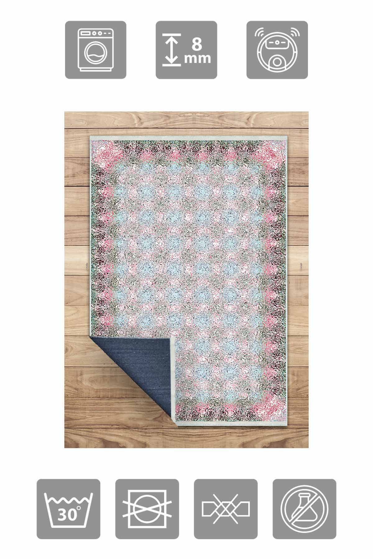 Maße und Lieferung: 1x Birkilim waschbarer dekorativer Teppich, seidige, rutschfeste Unterseite | MLN-IP-HS-256
