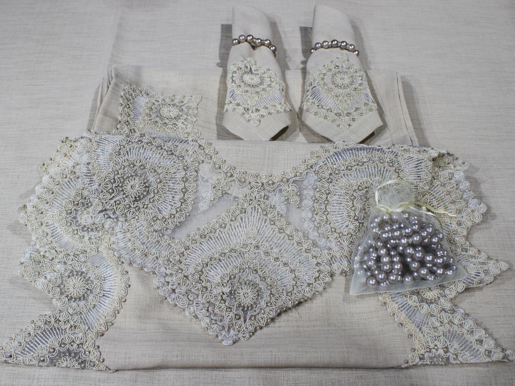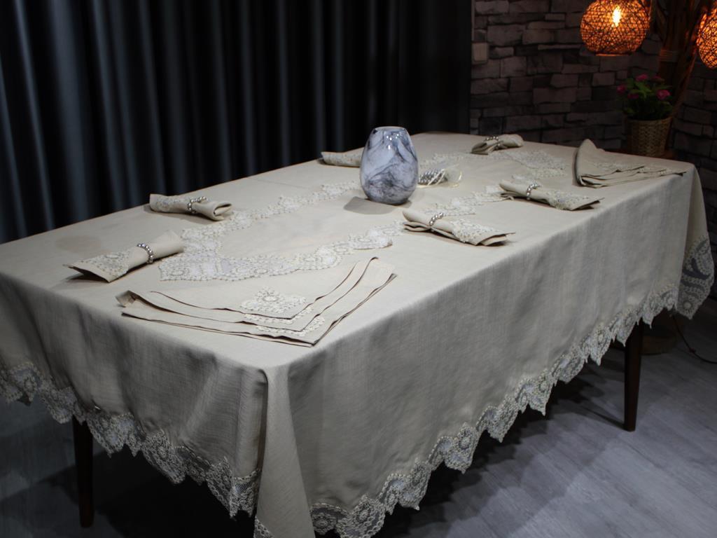 Produktinformationen "Çeyiz Diyarı Kar Tanesi 26 Parça Masa Örtüsü Takımı Cappucino"