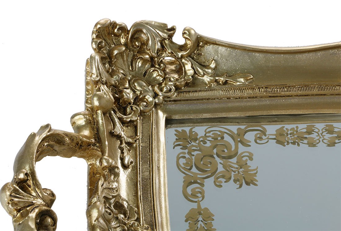 Lieferumfang und Abmessung: 1 x Cınar | Serviertablett | Servierplatte | Servicetablett | Teetablett | Kaffeetablett | Aus Edelstahl & Glas | Gold | Ornamente | 401612000009