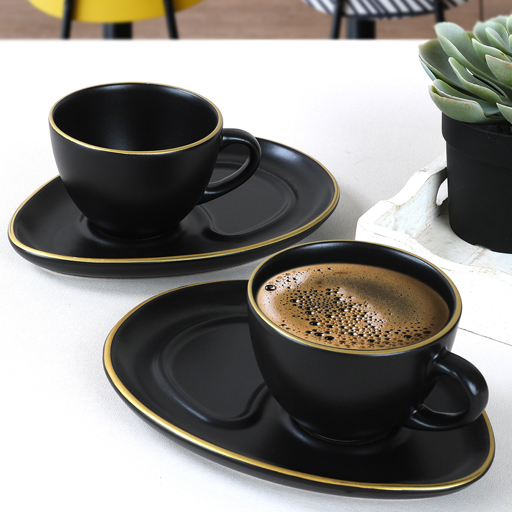 Produktinformationen "Damla Gold Kaffee Präsentationsset 4-teilig für 2 Personen | Keramik"