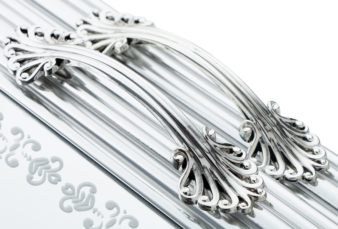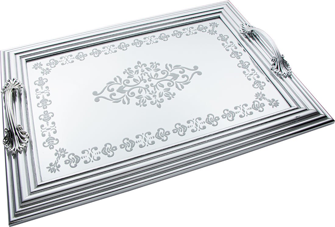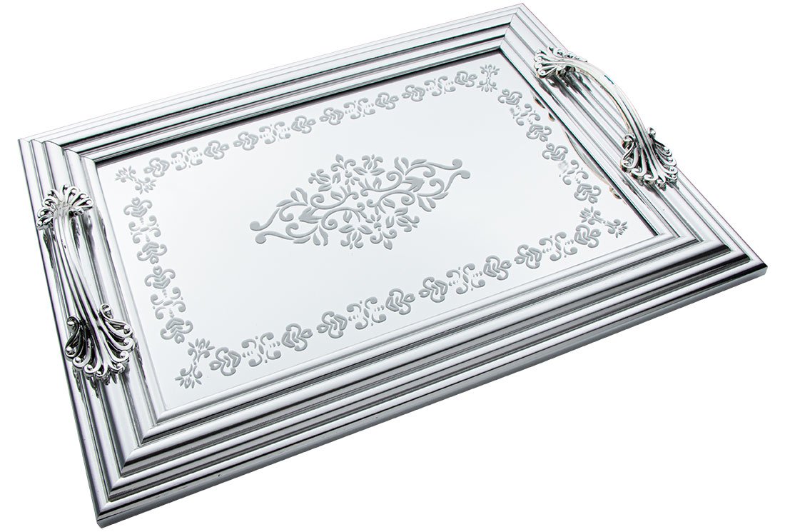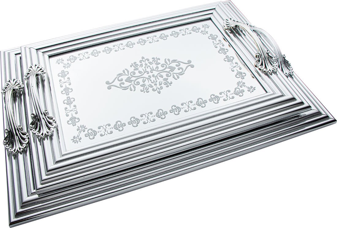 Lieferumfang und Maße: 1x Dekonaz | 2'er Serviceplatte | Serviertablett | mit Spiegelboden | Kunststoff | Silber | By-ct9022
