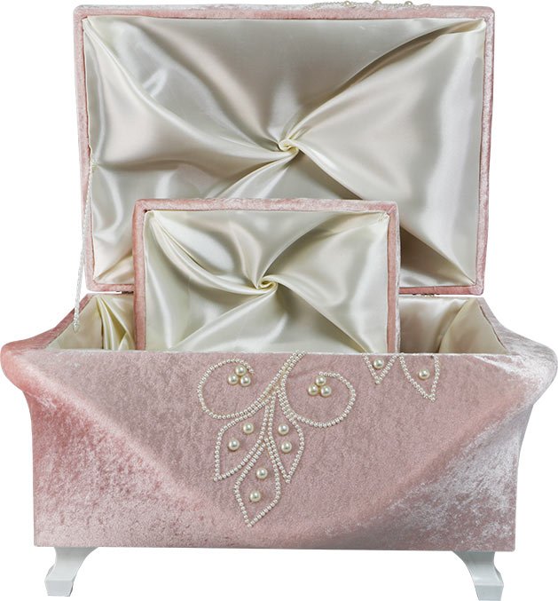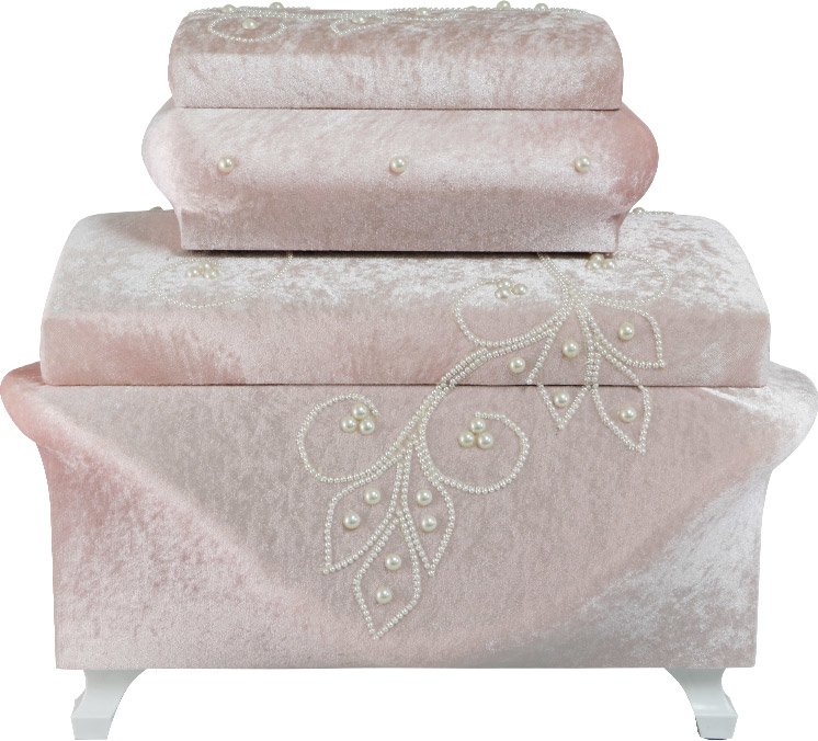Lieferumfang und Abmessung: 1 x Dekonaz 2er Blumen Design Perlen Verzierte Mitgift Truhe | Pink | Dt-0005-p