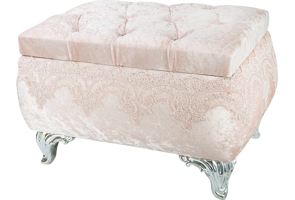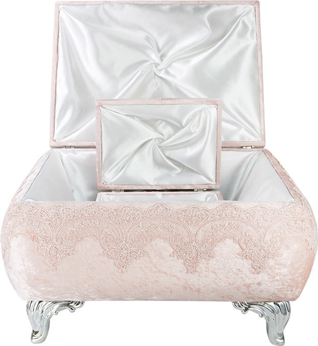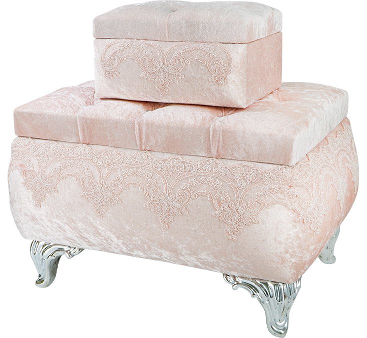 Lieferumfang: 1 x Dekonaz 2er Mitgift Truhe Spitzen Verzierung Silber Fuß | Puder | DT-301-pudra