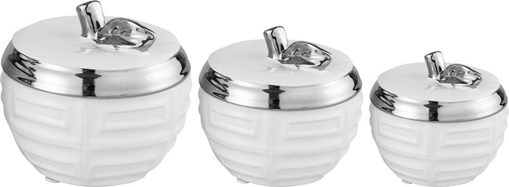 Lieferumfang und Abmessung: 1 x Dekonaz 3er Vasen Set Apfel Form | Weiß Silber | BC-9912-WHITE