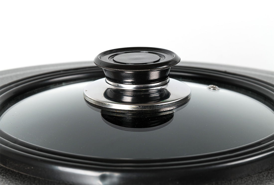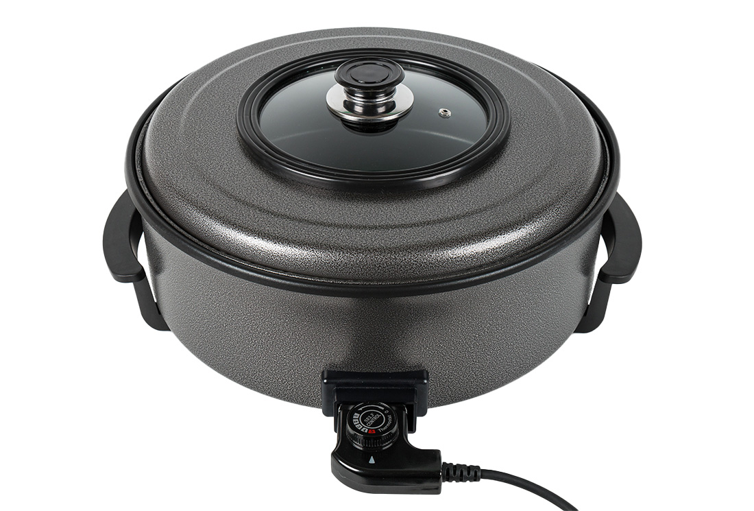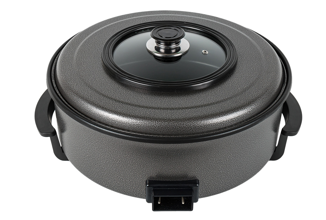 Lieferumfang und Abmessung: 1 x Dekonaz Elektronische Pizzapfanne 42x11cm 1500W | Rund | Grau | By-pp-42x11-hg