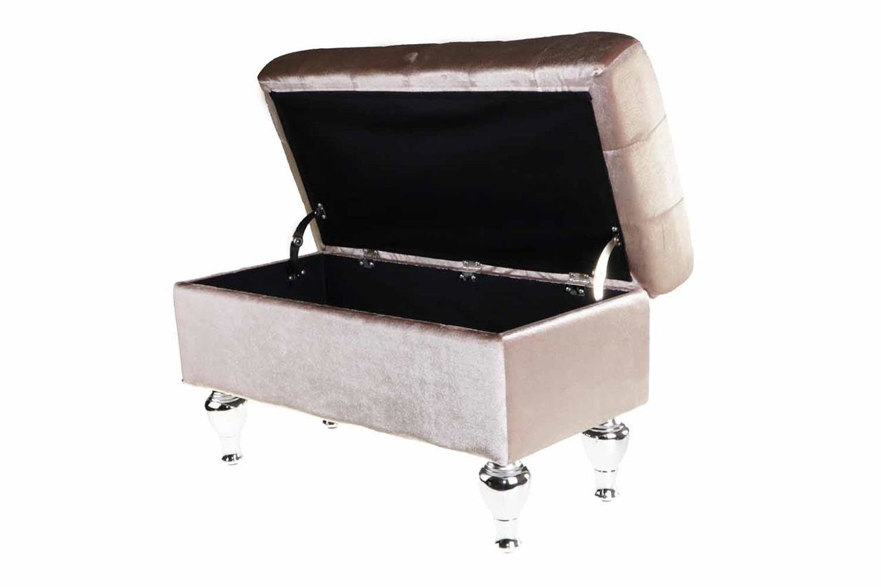 Lieferumfang: 1x Dekonaz | Hocker | Samt | Creme verziert mit Strasssteinen | 84cm x 44cm x 33cm | fabric7c310165-28-lightcoffee