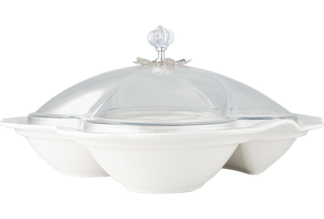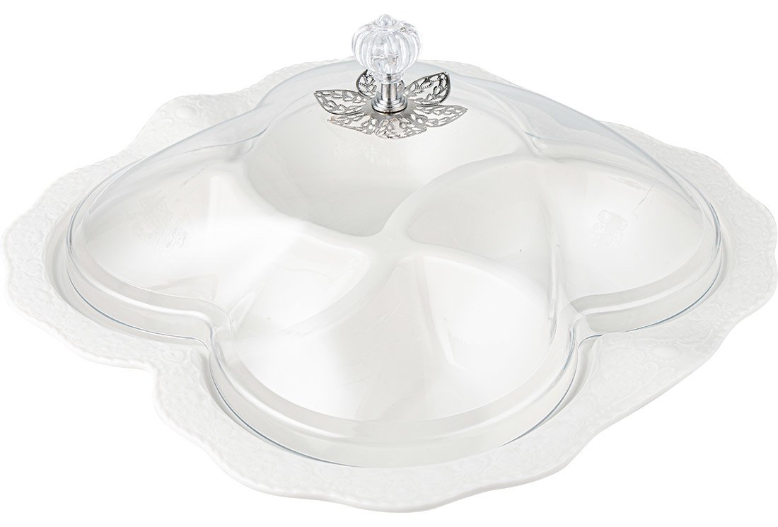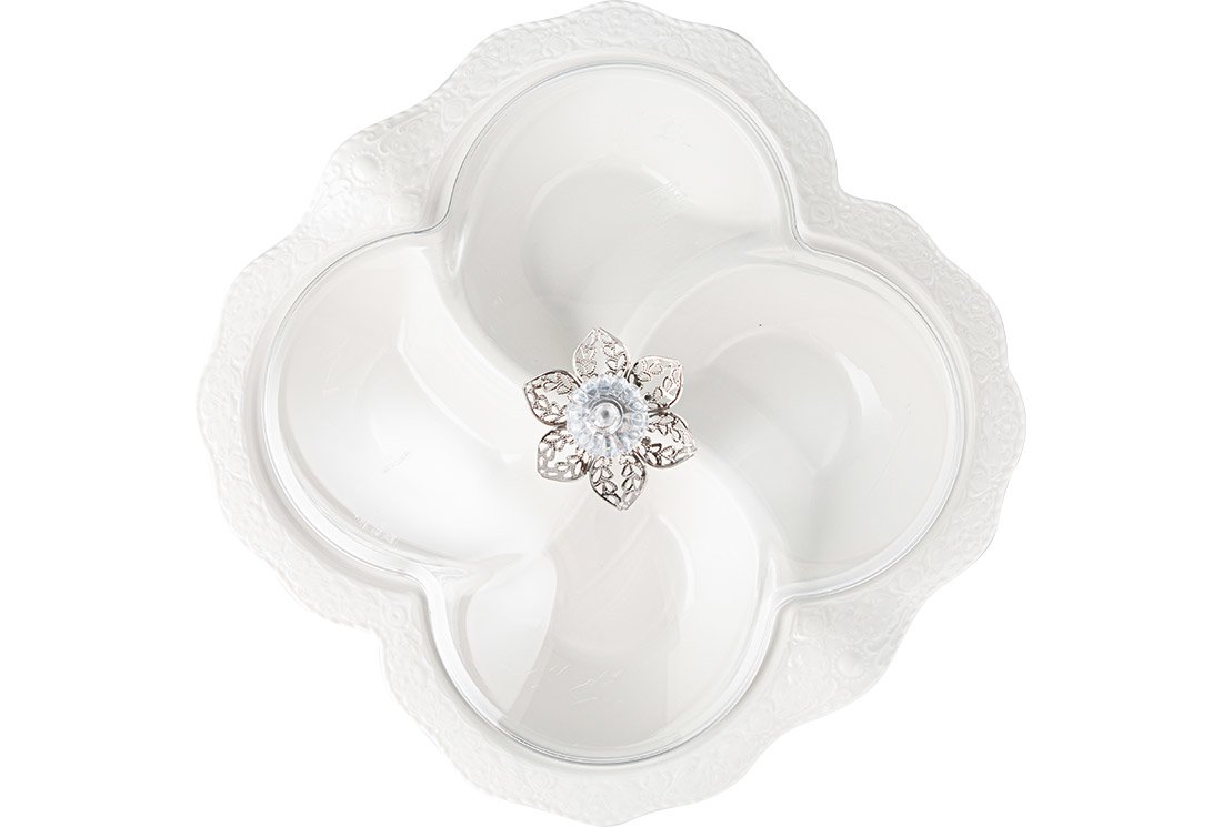 Lieferumfang und Maße: 1x Dekonaz | Snack- und Frühstücks-Set | mit 4 Fächer | Porzellan | Bambus | Weiß | Gp-0053