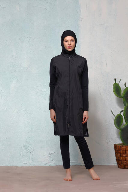 Tesettür mayonun kol ve tayt kısmı likralı polyamid kumaştan üretilmiştir. Yumuşak dokusu sayesinde yüzerken size rahatsızlık vermez ve hareket özgürlüğü sağlar.