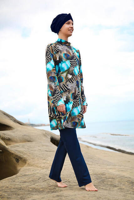 Marina 1955 Tam Kapalı Tesettür Mayo Lacivert Ürün; pantolon, tunik, eşarp ve büstiyer... mehr