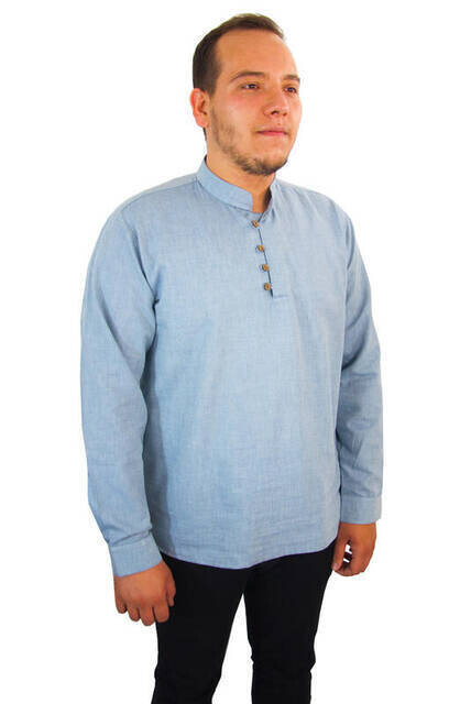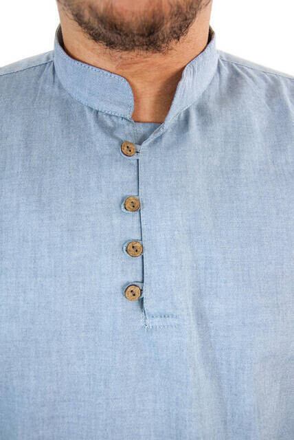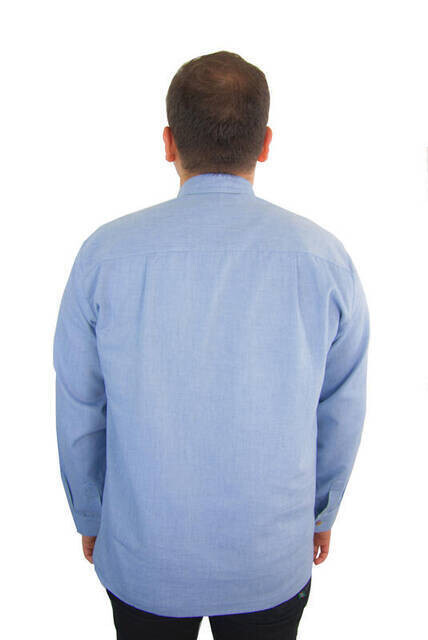 Gömlek Özellikleri Keten Gömlek Mavi Renk Kolları Düğmeli Yaka Dört Düğmeli mehr