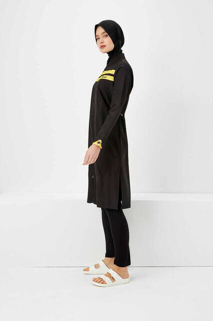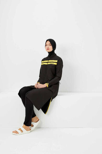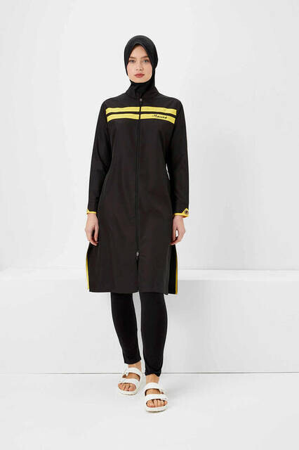 Produktinformationen "Haşema Sarı Şeritli Siyah Tam Kapalı Tesettür Mayo H-2833-20"