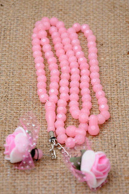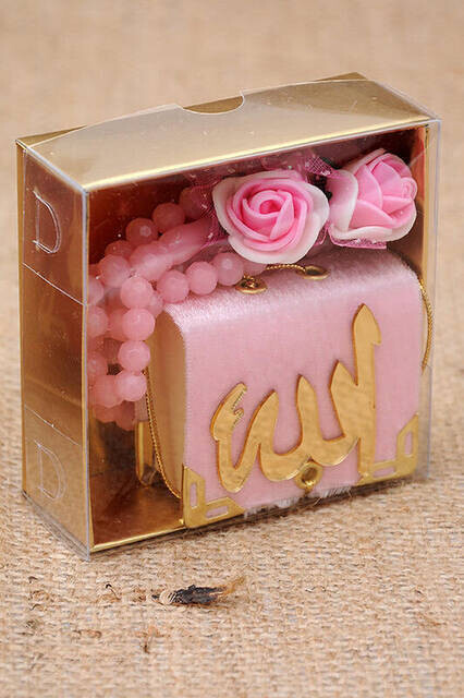Kadife Kaplı Mini Kuran ve Tesbihli Set - Pembe Renk - Mevlüt Hediyesi