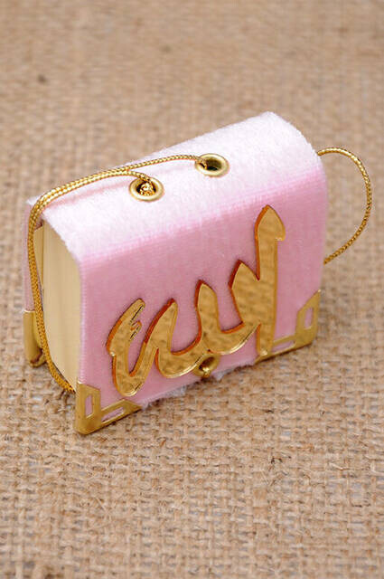 Produktinformationen "Kadife Kaplı Mini Kuran ve Tesbihli Set - Pembe Renk - Mevlüt Hediyesi"