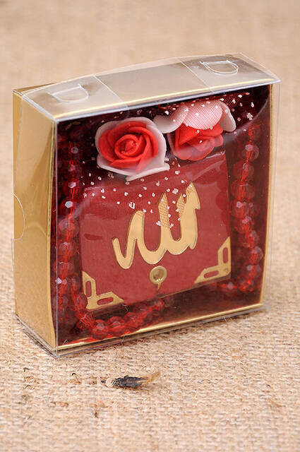 Mevlüt Hediyesi Kadife Kaplı Mini Kuran ve Tesbihli Set - Bordo