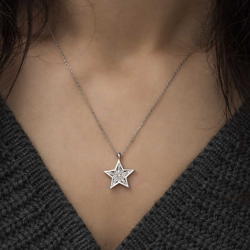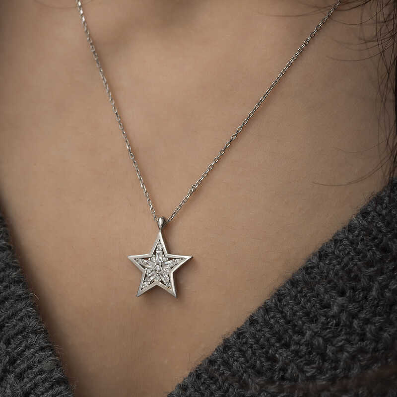 Teslimat: 1 x Gümüş Baget Taşlı Yıldız Kolye