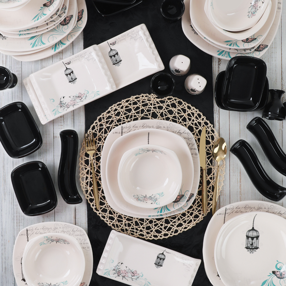 Retro Yemek/Kahvaltı Takımı 44 Parça 6 Kişilik | Keramika