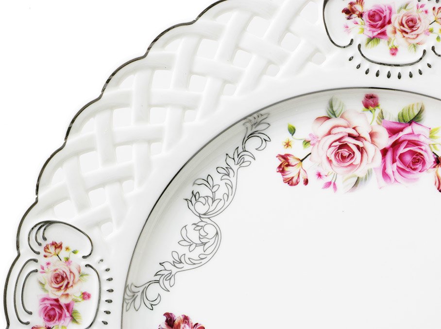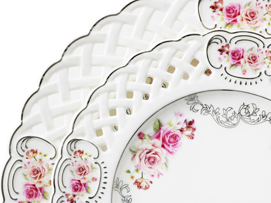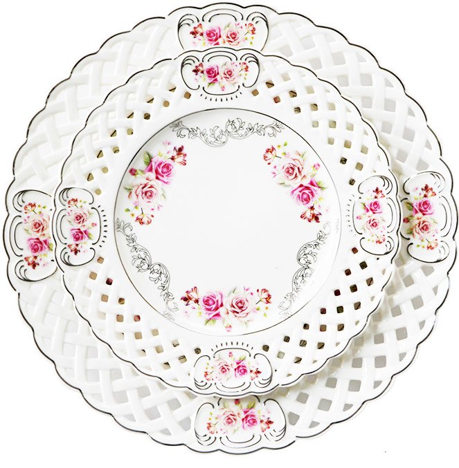 - Weißer Porzellan, Rand mit Silber Verzierung