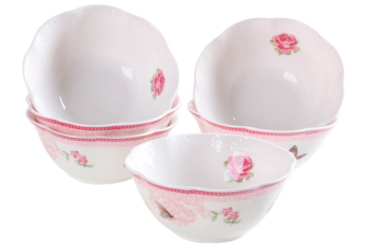 Lieferumfang und Abmessung: 1 x Duygu Vintage Rosen Design Suppenschüssel 6 Teilig