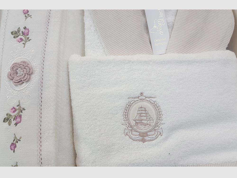 Fiesta bestickte Bambus Bademantel Set Traumcreme