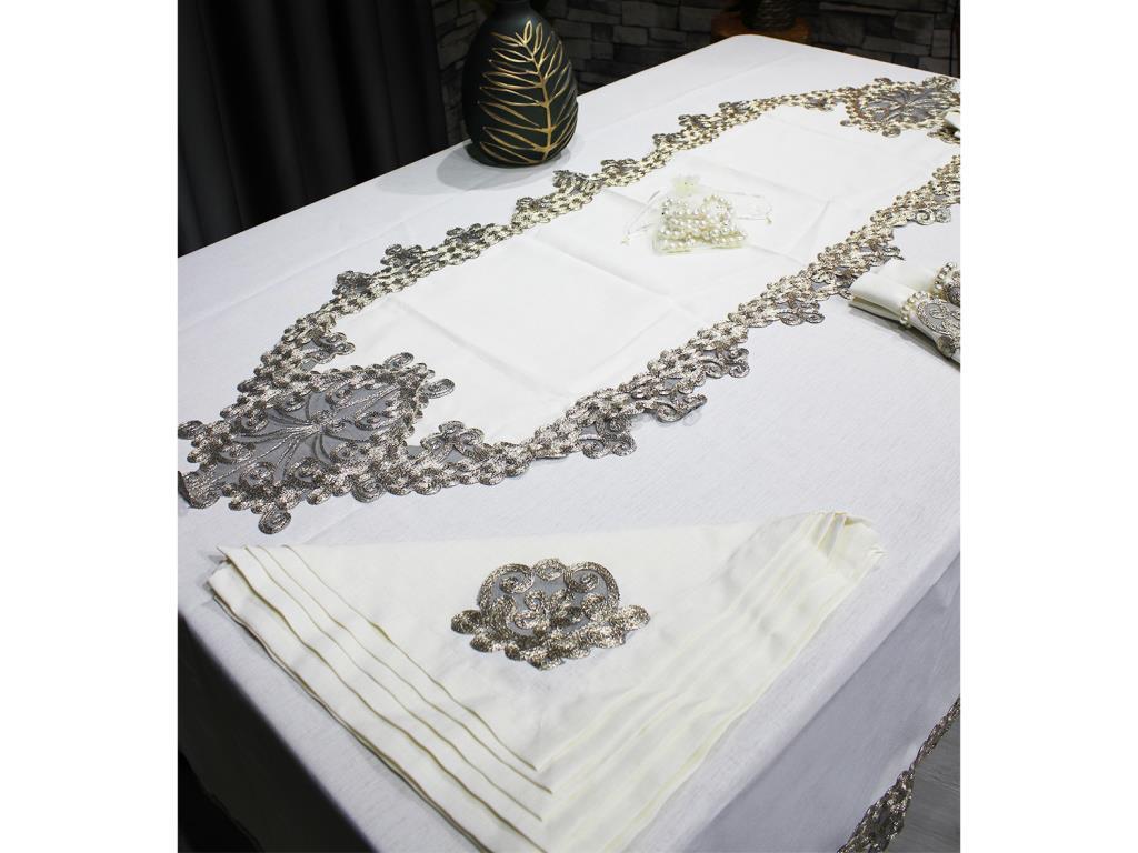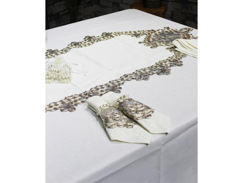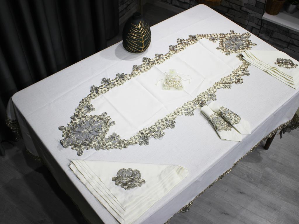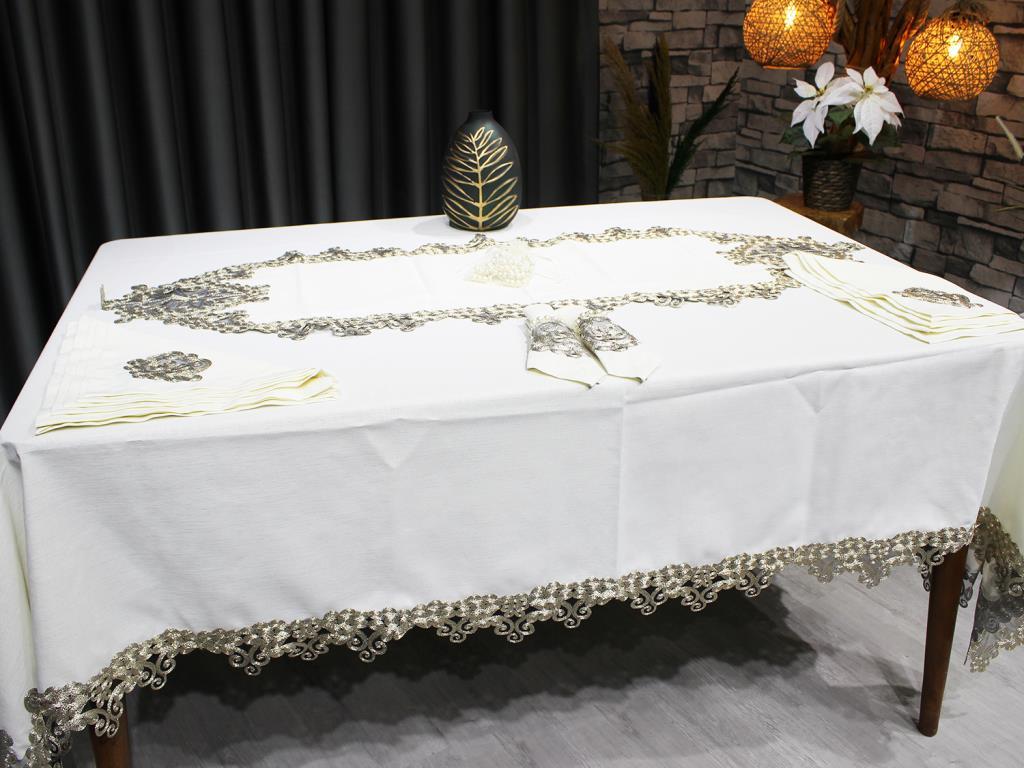 Produktinformationen "Fransız Güpürlü Kelebek Masa Örtüsü Takımı 26 Parça Krem Gold"