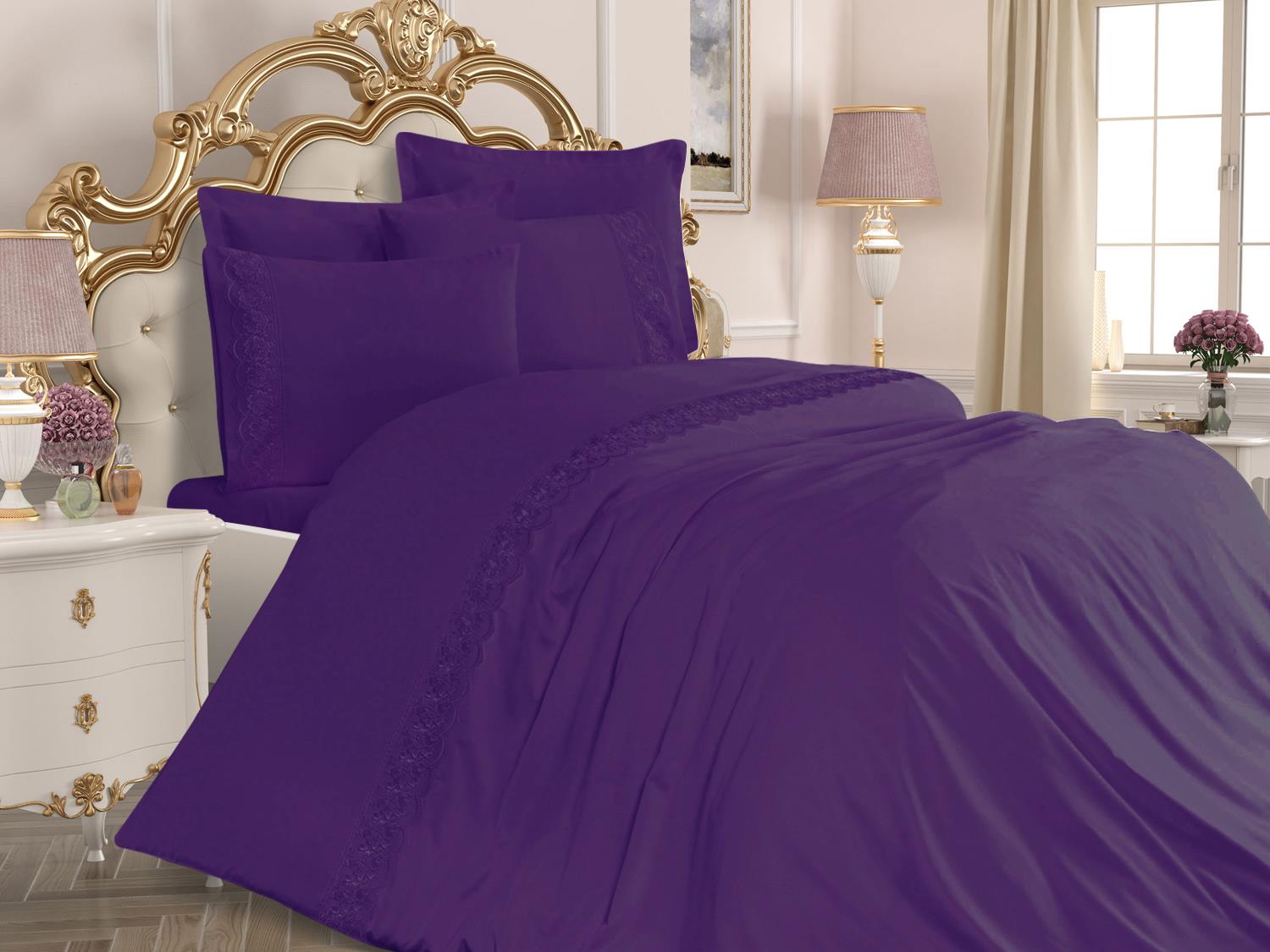 Produktinformationen "Französische Spitze Lalemzar Mitgift Bettbezug Set Pflaume"