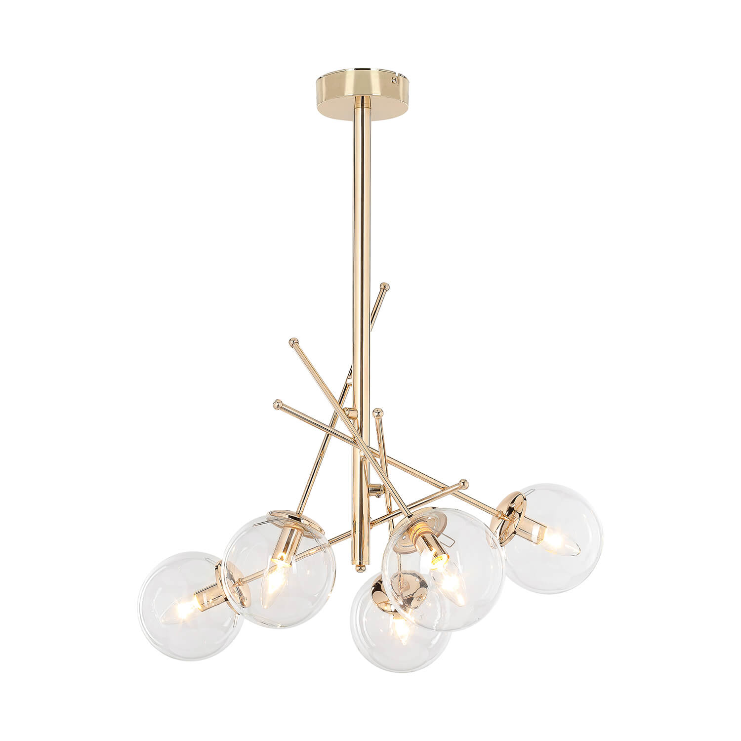 • Der 5-teilige Gondia-Kronleuchter spiegelt den modernen Stil wider und verleiht der Umgebung, in der er sich befindet, ein anderes Ambiente. Er bietet eine homogene und ästhetische Beleuchtung.