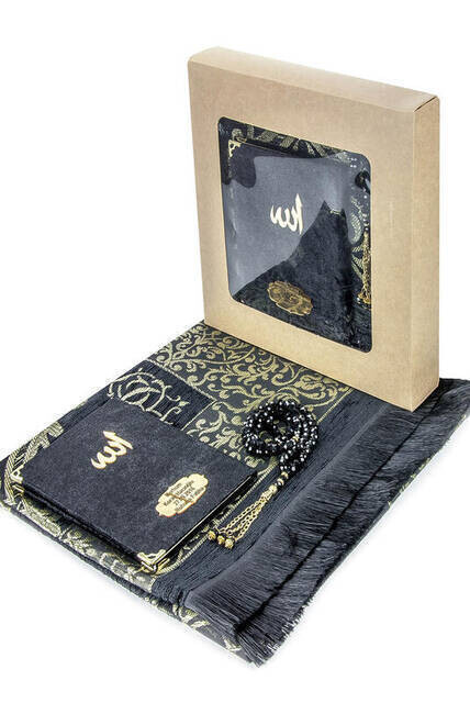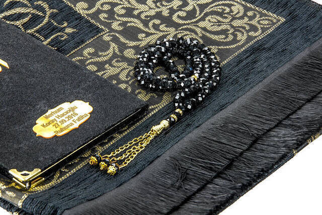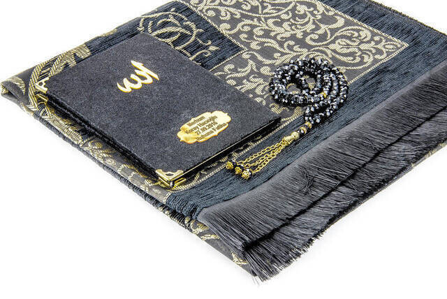 Hajj Umrah Mevlid Set 24 - Name gedruckt Samtbedeckt Yasin - Gebetsteppich - Rosenkranz - Boxed