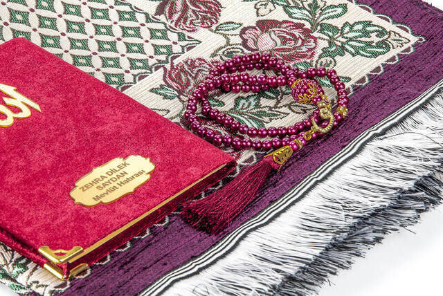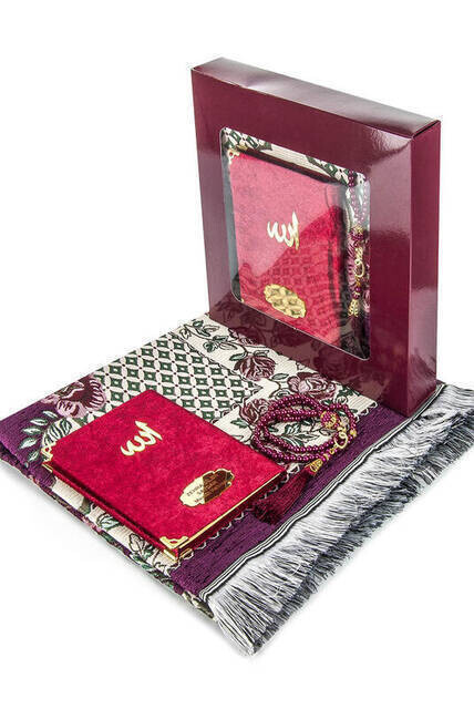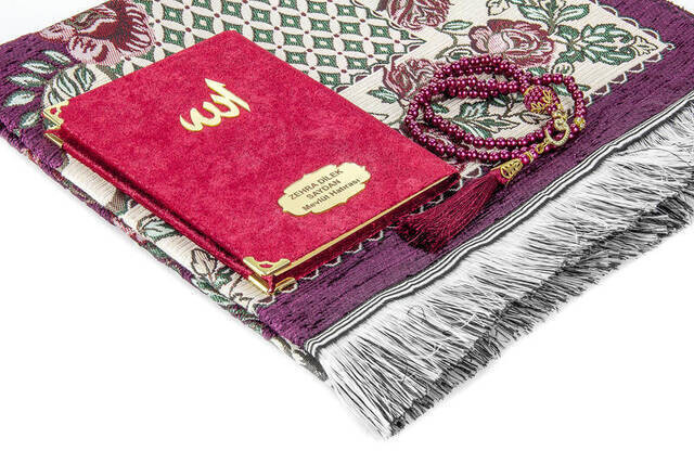 Produktinformationen "Hajj Umrah Mevlid Set 33 - Name gedruckt Samtbedeckt Yasin - Gebetsteppich - Rosenkranz - Boxed"