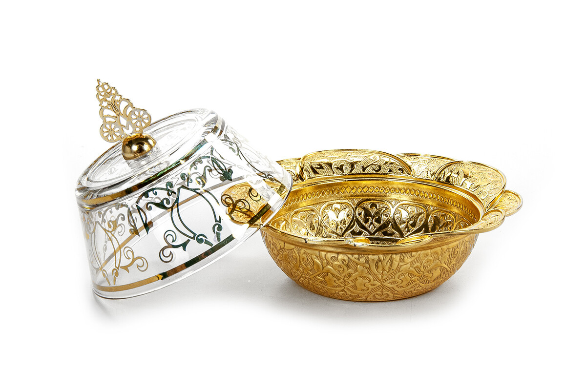 Produktinformationen "Hajj Umrah Zuckerdose mit Glasüberzug und Dattelschale Gold"