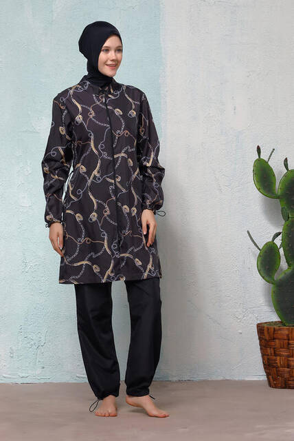 Produktinformationen "Haşema H-2583-19 Güher Schwarzer, vollständig bedeckter Hijab-Badeanzug"
