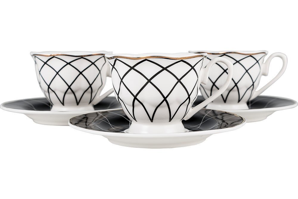 Lieferumfang und Maßen: 1 x Hayal | Modern | Tee- Kaffeetassen Set | Schwarz | Weiß | Gold | By-alz-p180202-2