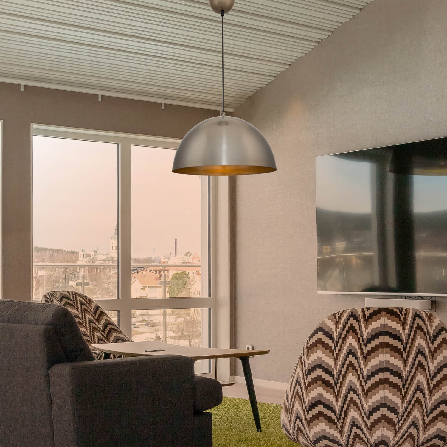 . Dank des Aufhängesystems kann die Höhe an Ihre Decke angepasst werden.