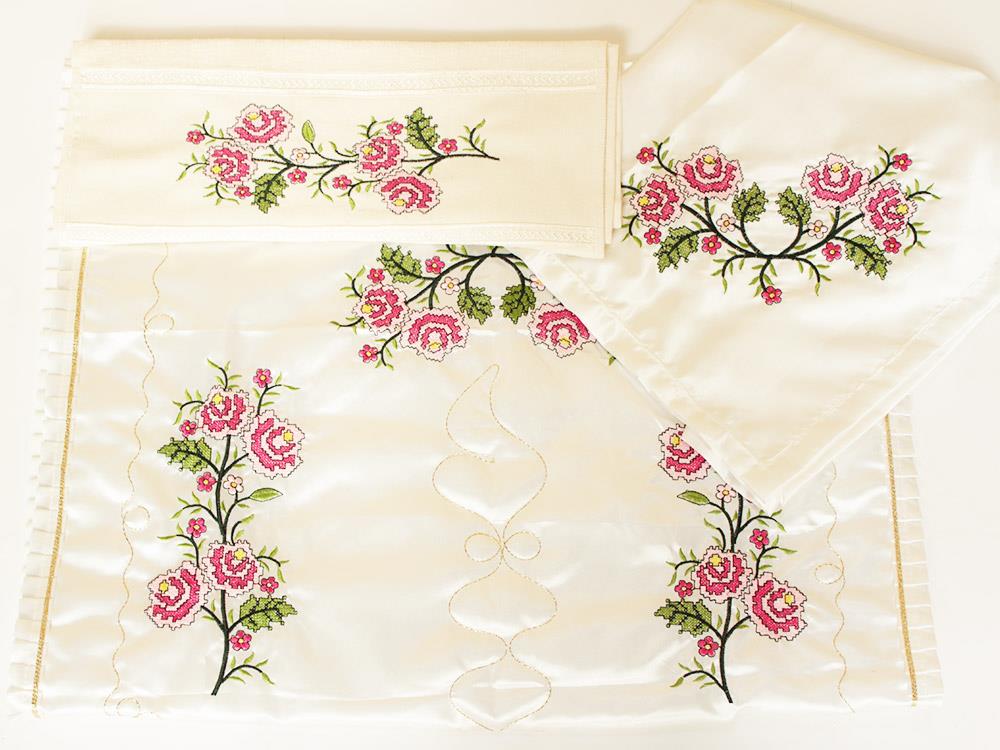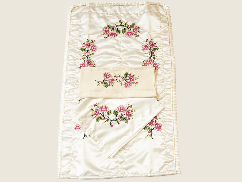 Saten Kumaştan Üretimi Yapılmıştır.Kanaviçe işlemeleri ile özel tasarım oluşturulmuştur.