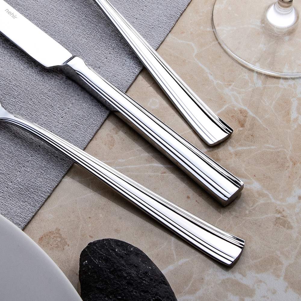 Wir haben den feinsten Qualitätsstahl in Katre-Bestecksets mit einwandfreier Verarbeitung interpretiert. Mit seinem spiegelglänzenden, glänzenden Stahl und seinem klassischen Stil verleihen sie Ihren Tischen einen Mehrwert.