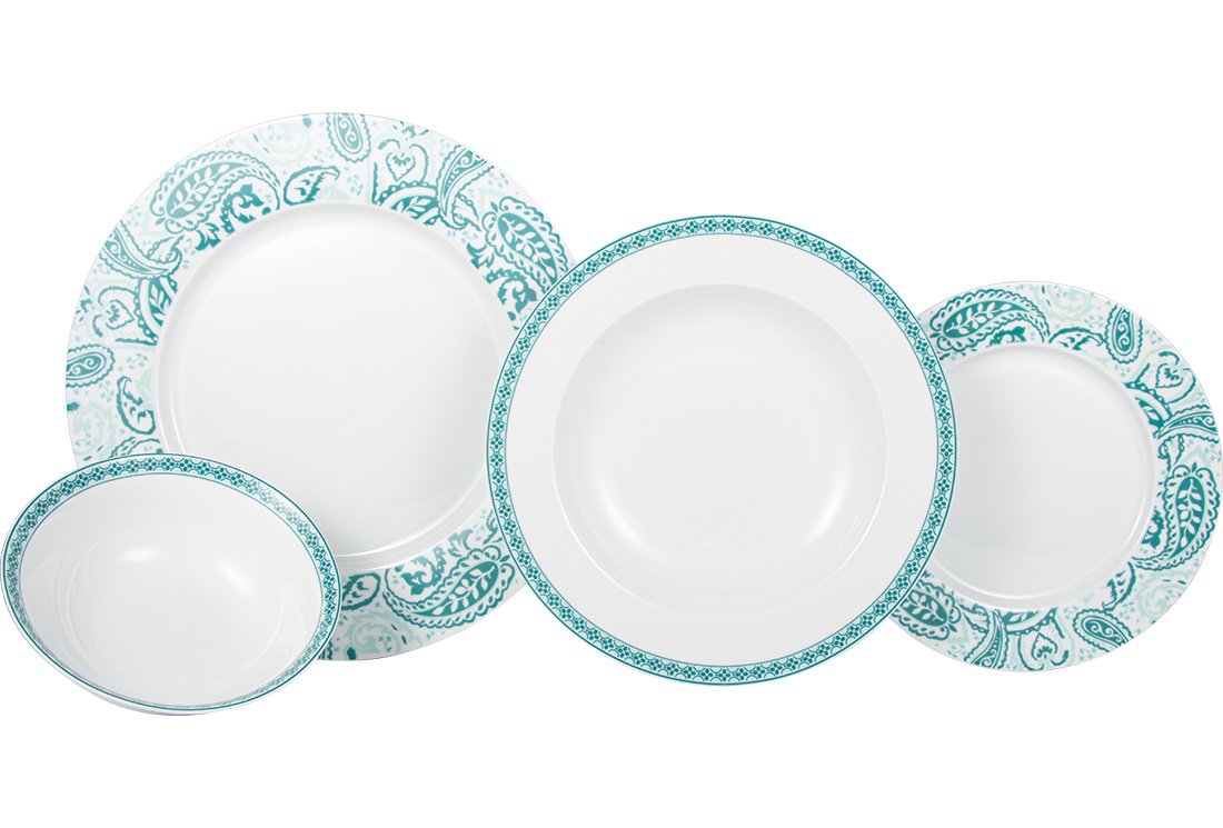 Lieferumfang und Abmessung: 1 x Korkmaz Siesta Collection | 24 tlg.| Tafelservice | Teller-Set | Esservice | Tafel-Set | Porzellan | Weiß & Grün | Rund | 6 Personen | A8949