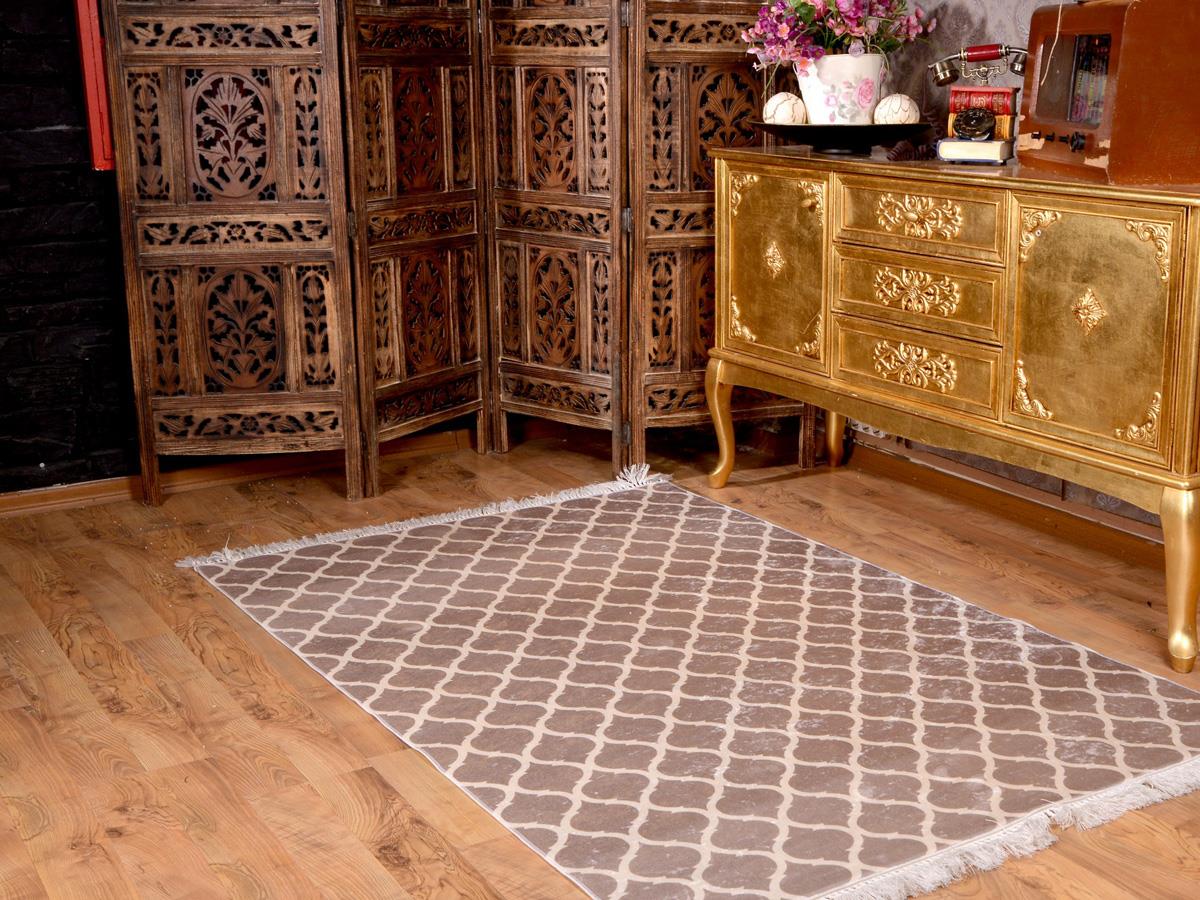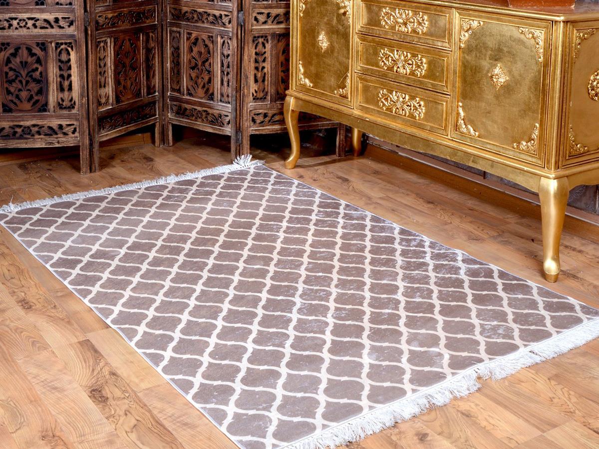 Produktinformationen "Latex rutschfeste Basis Digitaldruck Samt Teppichbecher Kamelweiß 180x280 cm"