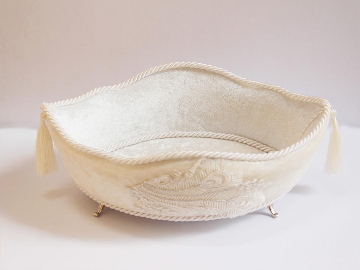 Leaf Püsküllü Gondol Lüx Havlu Sepeti Krem