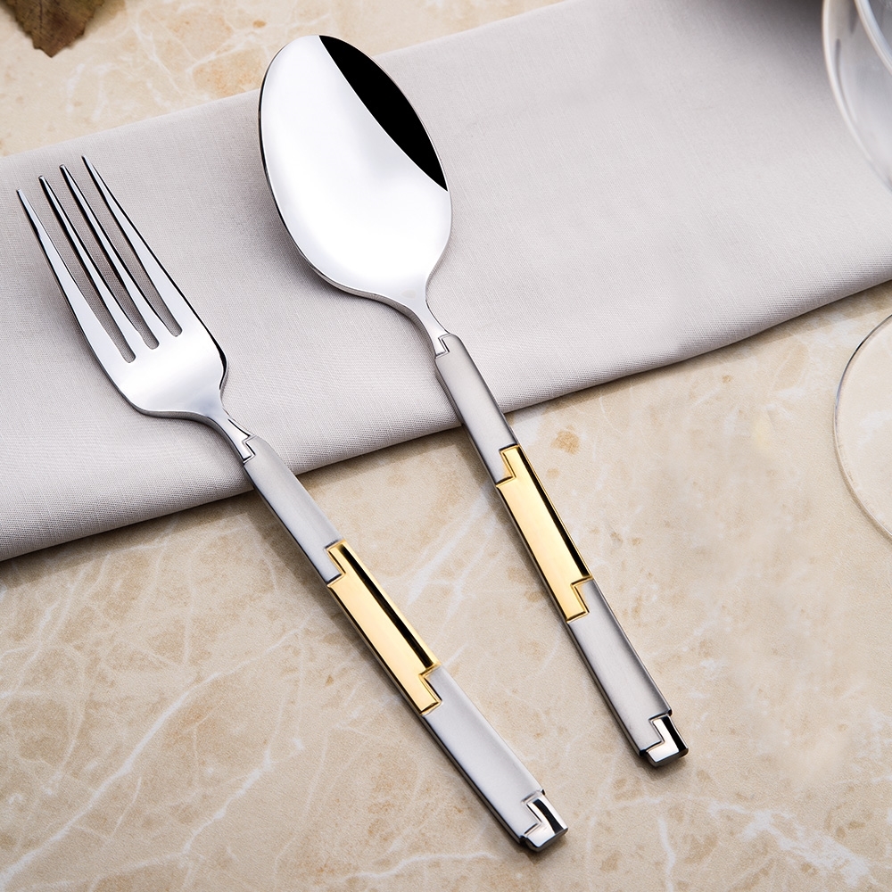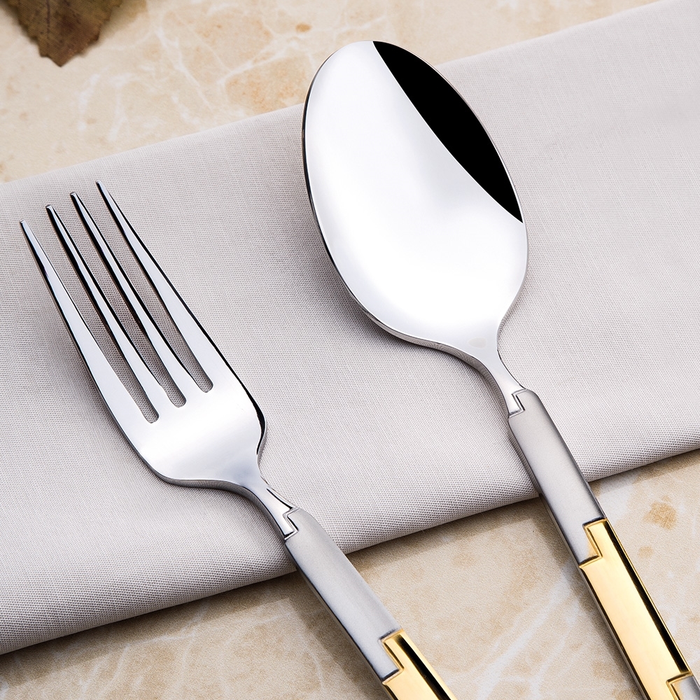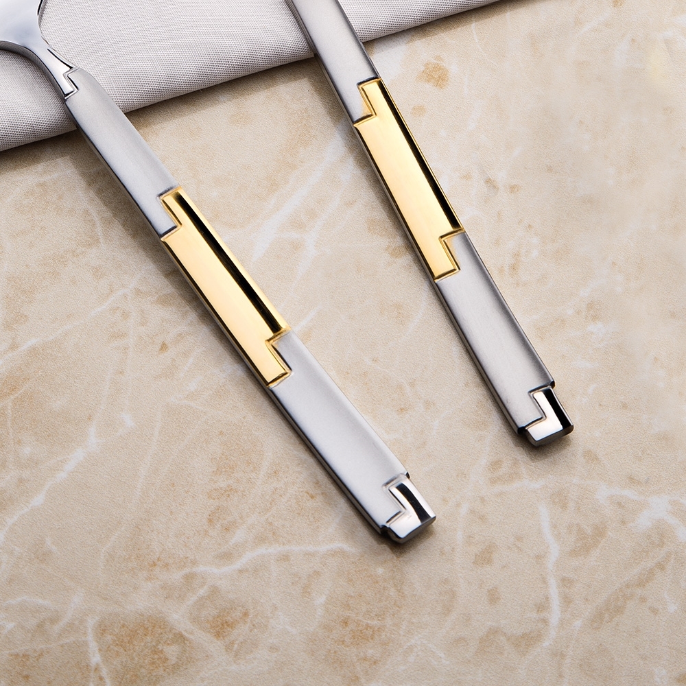 Das Londoner Besteck erstrahlt in seiner ganzen Eleganz und Pracht auf Ihrem Tisch mit goldenen Details, die auf einen seidigen Satinkörper gestickt sind.