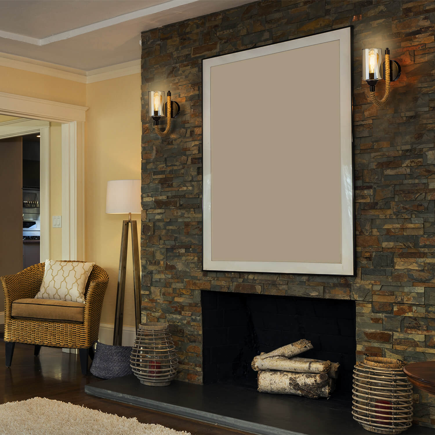 Das Produkt hat eine Seilinstallation auf einem gealterten lackierten Rahmen. Mit seinen honigfarbenen Gläsern wirkt es dekorativ. Lampen werden nicht gesendet.