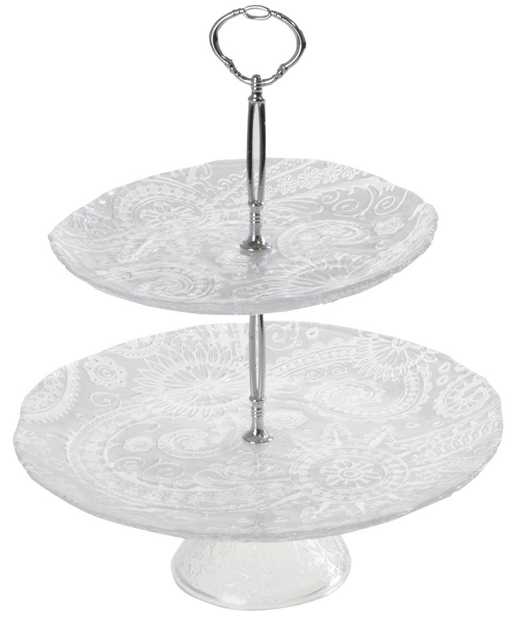 Artikelbezeichnung: Luxuriöses Etagere 2-Stufig Glas Handbemalt 36cm Weiß