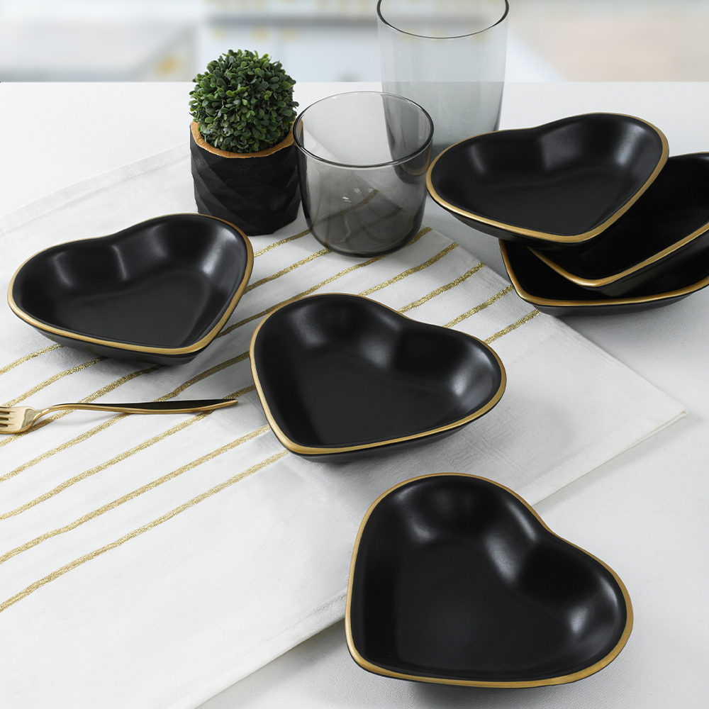 Produktinformationen "Matte Black Gold Heart Cookie 14 cm 6 Stück | Keramika"