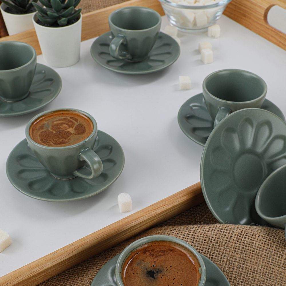 Produktinformationen "Mattgrünes Mandelkaffee-Set 12-teilig für 6 Personen | Keramik"