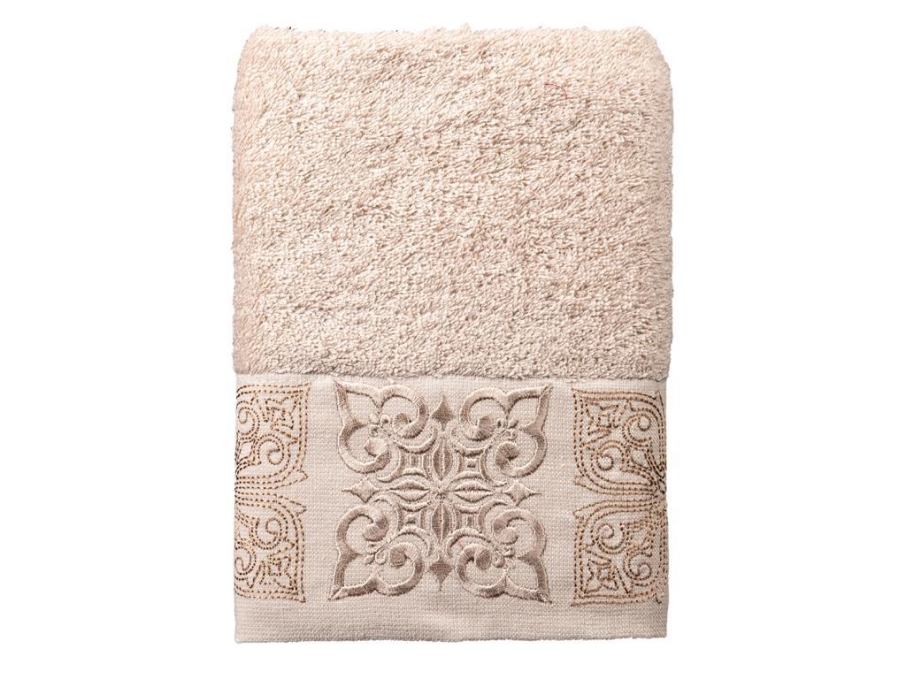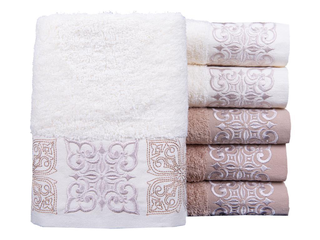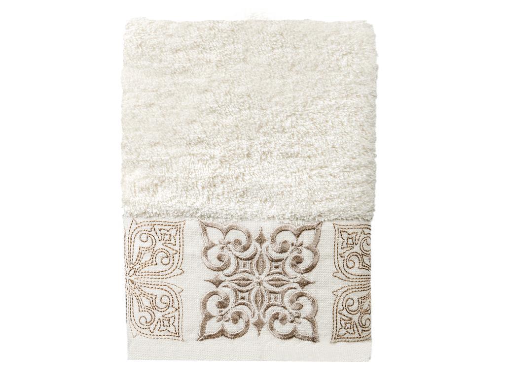 Ein stilvolles Muster wurde mit Stickerei auf dem Handtuch erstellt.
